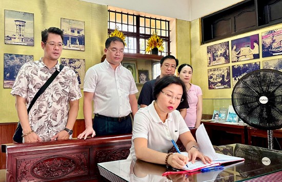 Đồng chí Phạm Thị Thanh Mai ghi cảm tưởng tại Nhà tưởng niệm Anh hùng liệt sĩ Võ Thị Sáu