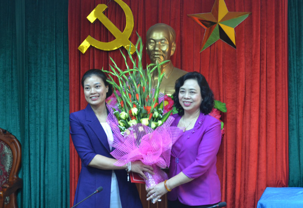 Phó Bí thư Thường trực Thành ủy Ngô Thị Thanh Hằng trao Quyết định cho Bí thư Huyện ủy Mỹ Đức Bạch Liên Hương