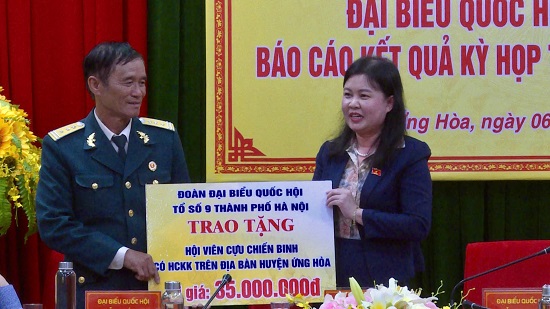 Cũng tại hội nghị, đại biểu Quốc hội thành phố Hà Nội (đơn vị bầu cử số 9) đã tặng hội viên Hội Cựu chiến binh có hoàn cảnh khó khăn trên địa bàn huyện Ứng Hòa 35.000.000 đồng.