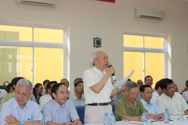 Cử tri quận Ba Đình phát biểu ý kiến tại buổi tiếp xúc với đại biểu Quốc hội trước Kỳ họp thứ 9