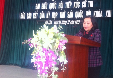 Tại các buổi TXCT, sau khi nghe Đại biểu Quốc Hội báo cáo kết quả kỳ họp thứ 6, Quốc hội khóa XIII, báo cáo trả lời kiến nghị cử tri của kỳ tiếp xúc trước, cử tri đã tham gia phát biểu ý kiến, cơ bản đồng tình với chương trình, nội dung và kết quả kỳ họp Quốc hội vừa qua đã quyết định nhiều vấn đề quan trọng của đất nước mà nhân dân mong đợi. Cử tri phản ánh sự phấn khởi và tuyệt đối tin tưởng vào sự lãnh đạo của Đảng Cộng sản Việt Nam, vào Quốc hội, Chính phủ đã giữ vững được chính trị, an ninh quốc phòng, kinh tế đất nước từng bước ổn định, khởi sắc.