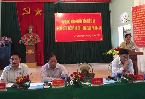 * Tại huyện Mê Linh, tại địa điểm tiếp xúc Trụ sở HĐND – UBND xã Tam Đồng, một số cử tri kiến nghị: Bố trí kinh phí hỗ trợ sau khi dồn điền đổi thửa, bố trí vốn để thực hiện các dự án đang thi công dở dang, đầu tư nâng cấp, cải tạo một số tuyến đường giao thông, nước sạch....