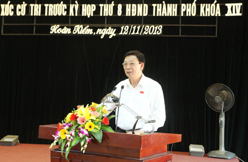 Trước những vấn đề bất cập được cử tri Hoàn Kiếm phản ánh, Chủ tịch UBND Thành phố đã trao đổi làm rõ thêm trách nhiệm của các ngành liên quan. Đồng thời, thông tin về một số giải pháp điều hành của Thành phố để phấn đấu đạt mức cao nhất thực hiện các chỉ tiêu kinh tế xã hội năm 2013. Trong đó quan tâm đảm bảo an sinh xã hội, ưu tiên bố trí quỹ đất xây dựng trường học và xây dựng quy chuẩn đối với cải tạo trường học khu vực nội đô, nâng cao chất lượng giáo dục gắn với tăng cường quản lý. Đối với lĩnh vực y tế cần siết chặt kỷ cương quản lý và tăng cường giáo dục y đức. Tập trung bảo tồn phát huy giá trị các di tích, di sản văn hóa. Huy động các nguồn lực cho đầu tư hạ tầng đô thị, xây dựng nông thôn mới.