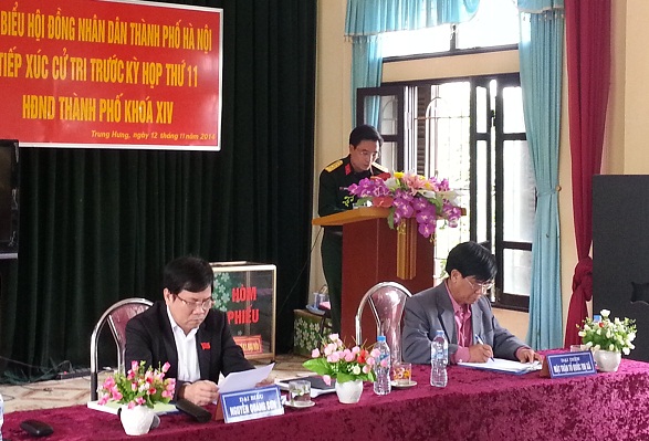 Ngày 12/11, các vị đại biểu HĐND Thành phố đã tiếp tục chương trình tiếp xúc cử tri tại các đơn vị bầu cử trước Kỳ họp thứ 11 HĐND. Thông báo với cử tri về thời gian, nội dung tổ chức Kỳ họp thứ 11 được tổ chức trong các ngày từ 02 đến 06/12/2014, sẽ bàn thảo, quyết định nhiều nội dung quan trọng về kinh tế - xã hội của Thủ đô; lấy phiếu tín nhiệm đối với các chức danh do HĐND bầu; các nội dung chuyên đề về đặt đổi tên đường phố; về công trình, cụm công trình trọng điểm phát triển Thủ đô giai đoạn 2011 - 2015; về phát triển khoa học công nghệ; phí, lệ phí; định mức chi tiêu... Bên cạnh đó, đại diện các Tổ đại biểu HĐND Thành phố cũng báo cáo với cử tri về tình hình kinh tế - xã hội; báo cáo trả lời những ý kiến, kiến nghị của cử tri tại các kỳ tiếp xúc trước.