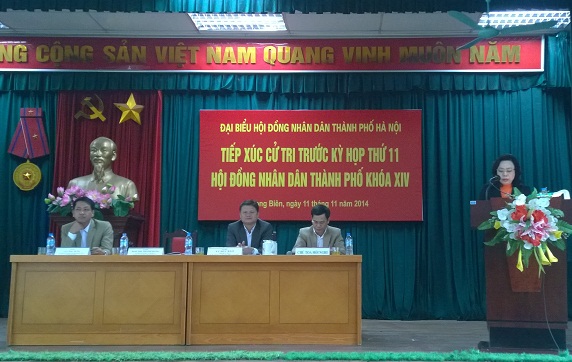 Ngày 11-11, các quận Long Biên, Tây Hồ, Phúc Thọ đã tiến hành để đại biểu HĐND Thành phố tiếp xúc với cử tri trước Kỳ họp thứ 11. Tại các buổi tiếp xúc, đại biểu HĐND Thành phố đã báo cáo với cử tri về tình hình kinh tế - xã hội năm 2014 và phương hướng nhiệm vụ năm 2015; trả lời các kiến nghị của cử tri ở kỳ tiếp xúc trước; đồng thời thông báo với cử tri về nội dung, thời gian tổ chức Kỳ họp thứ 11 HĐND Thành phố sẽ diễn ra trong các ngày từ 02 đến 06/12/2014.