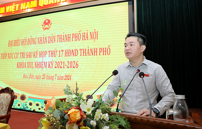 Sáng 25/7/2024, Tổ đại biểu HĐND thành phố Hà Nội - Đơn vị bầu cử số 24 đã tiếp xúc cử tri huyện Hoài Đức sau kỳ họp thứ 17 HĐND Thành phố khóa XVI, nhiệm kỳ 2021-2026.