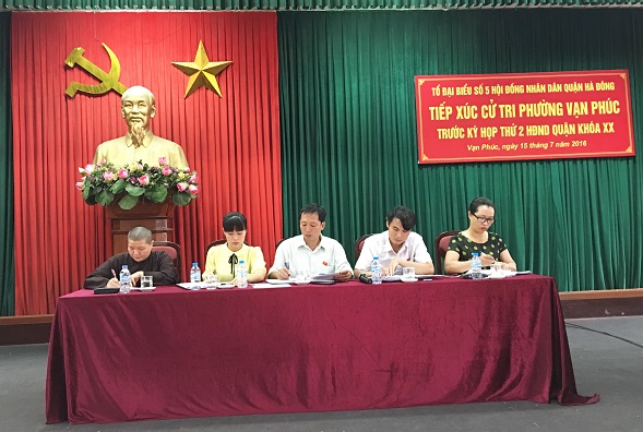 Chuẩn bị cho kỳ họp thứ 2 HĐND quận Hà Đông khóa XX, nhiệm kỳ 2016 - 2021, các tổ đại biểu HĐND quận đã tiến hành tiếp xúc cử tri tại các địa phương. Phát biểu ý kiến tại các buổi tiếp xúc, cử tri trông chờ và đề nghị các vị đại biểu HĐND trên địa bàn phát huy tốt vai trò, trách nhiệm của người đại biểu dân cử, tiếp tục thực hiện nghiêm túc chương trình hành động của mình đã trình bày trước cử tri trong đợt vận động bầu cử vừa qua.