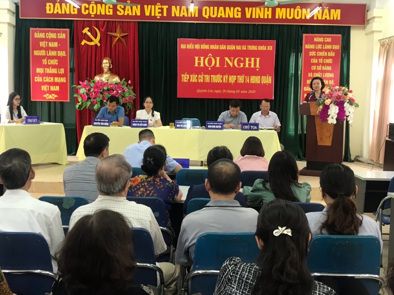 Để chuẩn bị cho kỳ họp thường lệ thứ 14 HĐND quận Hai Bà Trưng. Từ ngày 26/5/2020 đến ngày 04/6/2020, Thường trực HĐND quận tổ chức Hội nghị đại biểu HĐND quận tiếp xúc cử tri trước kỳ họp tại 08 đơn vị bầu cử trên địa bàn quận. Tại các Hội nghị tiếp xúc cử tri, đại biểu HĐND quận báo cáo với cử tri về kết quả thực hiện nhiệm vụ phát triển kinh tế - xã hội, an ninh - quốc phòng 6 tháng đầu năm và nhiệm vụ 6 tháng cuối năm 2020; chương trình kỳ họp thứ 14 HĐND quận khóa XIX.