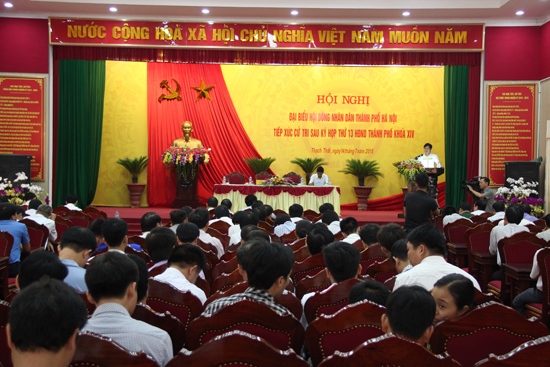 Cử tri huyện Thạch Thất bày tỏ sự vui mừng trước những kết quả Thành phố đã đạt được trong 6 tháng đầu năm. Đồng thời ghi nhận nhiều ý kiến của cử tri trong đó tập trung vào các vấn đề: Đề nghị quan tâm tới nguồn nước sinh hoạt tại xã Chàng Sơn; tiếp tục đầu tư tu bổ, tôn tạo di tích; quy hoạch thị trấn Liên Quan trong thời gian tới; xây dựng kết cấu hạ tầng cơ sở; tiếp tục đầu tư tuyến đường 419 đoạn từ xã Đại Đồng nối với Quốc lộ 32…