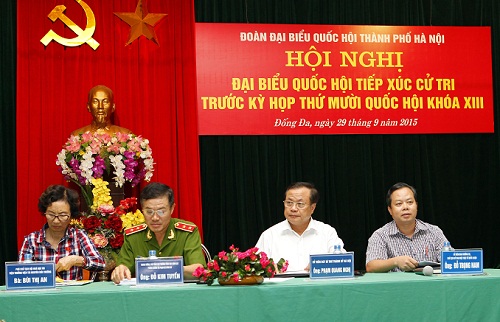 Buổi chiều 29/9, đơn vị số 2 có thêm ông Phạm Quang Nghị, Bí thư Thành uỷ Hà Nội, Trưởng Đoàn đại biểu Quốc hội Thành phố Hà Nội đã tiếp xúc với cử tri quận Đống Đa.