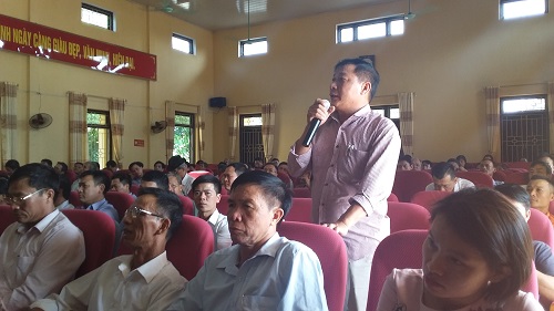 Tại buổi tiếp xúc, có 12 ý kiến cử tri phát biểu, các ý kiến đã đồng tình, nhất trí cao với các nội dung Tổ đại biểu báo cáo. Đồng thời bày tỏ tâm tư, nguyện vọng và đề xuất, kiến nghị một số vấn đề đang được cử tri, Nhân dân trong huyện quan tâm như: Về dự thảo Luật Phòng, chống tham nhũng cần quan tâm vấn đề kê khai tài sản, kiểm soát tài sản, xử lý tài sản không giải thích được; Luật Đất đai còn nhiều bất cập như: khó khăn trong việc đấu giá đất; việc chuyển đổi từ đất xen kẹt sang đất ở; Luật Tổ chức chính quyền địa phương: cử tri đề nghị sớm bổ sung số lượng Phó Chủ tịch UBND cấp xã; nên thí điểm không tổ chức HĐND cấp huyện, xã. Cử tri cũng đề nghị tăng thời lượng phát sóng các chương trình tuyên truyền pháp luật…