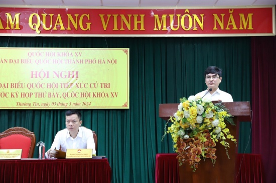 Sáng 3/5/2024, đại biểu Quốc hội Thành phố Hà Nội (đơn vị bầu cử số 9) gồm các đại biểu: Tạ Đình Thi, Phó Chủ nhiệm Ủy ban Khoa học, Công nghệ và Môi trường của Quốc hội; Nguyễn Phương Thuỷ, Phó Chủ nhiệm Ủy ban Pháp luật của Quốc hội; Nguyễn Tuấn Thịnh, đại biểu Quốc hội chuyên trách Đoàn ĐBQH Thành phố Hà Nội đã tiếp xúc cử tri các huyện Thường Tín, Phú xuyên, Ứng Hoà, Mỹ Đức trước kỳ họp thứ bảy, Quốc hội khóa XV.