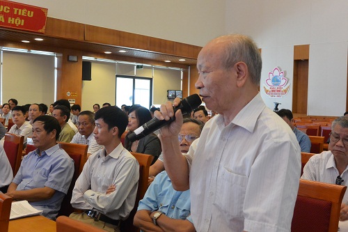 Cử tri quận Hà Đông phát biểu ý kiến tại buổi tiếp xúc