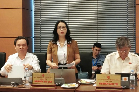 Đại biểu Nguyễn Thị Lan (Đoàn Hà Nội) thảo luận ở tổ. Ảnh: Đỗ Chí