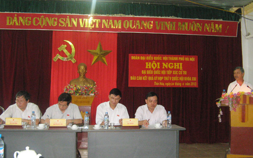Cử tri cũng đề nghị Thành phố xem xét lại việc quy hoạch, việc đền bù tái định cư và đẩy nhanh tiến độ xây dựng dự án xây dựng nghĩa trang Yên Kỳ mở rộng và quan tâm đầu tư xây dựng cơ sở hạ tầng cho 4 xã thuộc dự án Nghĩa trang Yên Kỳ.