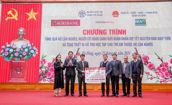 Ảnh: Đoàn đại biểu Quốc hội thành phố Hà Nội và Agribank trao 400 triệu đồng ủng hộ Quỹ vì người nghèo của huyện Thanh Trì và 538 triệu đồng tặng bà con khó khăn của huyện Thanh Oai