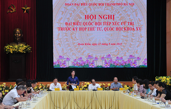 Chiều 27/9/2022, các đại biểu Quốc hội thuộc Đơn vị bầu cử số 2 (Đoàn đại biểu Quốc hội thành phố Hà Nội) đã tiếp xúc cử tri quận Hoàn Kiếm trước kỳ họp thứ tư, Quốc hội khóa XV.