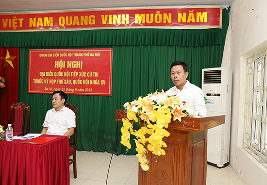 Sáng 25/9/2023, đại biểu Quốc hội thành phố Hà Nội thuộc Đơn vị bầu cử số 7 gồm các đại biểu: Phạm Thị Thanh Mai, Phó Trưởng đoàn chuyên trách Đoàn ĐBQH thành phố; Lê Quân, Giám đốc Đại học Quốc gia Hà Nội; Trần Việt Anh, Ủy viên chuyên trách Ủy ban Văn hoá, giáo dục của Quốc hội đã tiếp xúc cử tri huyện Ba Vì trước kỳ họp thứ sáu, Quốc hội khóa XV.