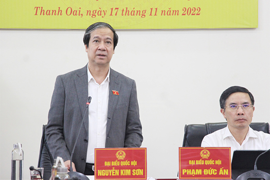 Chiều 17/11/2022, đại biểu Quốc hội thành phố Hà Nội thuộc đơn vị bầu cử số 6 gồm các đại biểu: Nguyễn Kim Sơn, Ủy viên Trung ương Đảng, Bộ trưởng Bộ Giáo dục và Đào tạo; Phạm Đức Ấn, Chủ tịch Hội đồng thành viên Ngân hàng Nông nghiệp và Phát triển nông thôn Việt Nam; Đỗ Đức Hồng Hà, Phó Chủ nhiệm Ủy ban Tư pháp của Quốc hội, đã tiếp xúc cử tri các quận, huyện: Hà Đông, Thanh Oai, Thanh Trì, sau kỳ họp thứ tư, Quốc hội khóa XV.