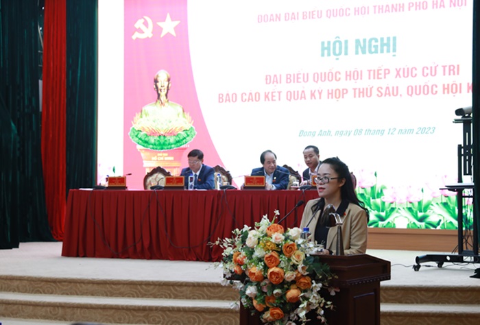 Tại Hội nghị, thay mặt Đoàn đại biểu Quốc hội thành phố Hà Nội, đại biểu Dương Minh Ánh đã báo cáo với cử tri về kết quả Kỳ họp thứ 6, Quốc hội khóa XV. Cụ thể, sau 22,5 ngày làm việc, Kỳ họp đã hoàn thành toàn bộ chương trình đề ra. Trong đó, Quốc hội đã thông qua 7 luật, 9 nghị quyết, cho ý kiến lần 3 đối với 1 dự án luật, cho ý kiến lần 2 đối với 1 dự án luật, cho ý kiến lần đầu đối với 8 dự án luật khác; lấy phiếu tín nhiệm đối với 44 người giữ chức vụ do Quốc hội bầu hoặc phê chuẩn; giám sát tối cao chuyên đề “Việc triển khai thực hiện các nghị quyết của Quốc hội về các Chương trình mục tiêu quốc gia về xây dựng nông thôn mới giai đoạn 2021-2025, giảm nghèo bền vững giai đoạn 2021-2025, phát triển kinh tế - xã hội vùng đồng bào dân tộc thiểu số và miền núi giai đoạn 2021-2030”…