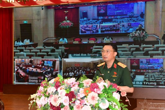 Trung tướng Nguyễn Quốc Duyệt, Ủy viên Ban Thường vụ Thành ủy, Tư lệnh Bộ Tư lệnh Thủ đô Hà Nội triếp thu ý kiến cử tri.