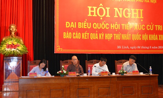 Ngày 4/8/2016, các vị ĐBQH đơn vị số 10 gồm Hòa Thượng Thích Bảo Nghiêm, Trưởng ban trị sự Thành hội phật giáo Hà Nội; ông Nguyễn Văn Thắng, Ủy viên dự khuyết Trung ương Đảng, Chủ tịch HĐQT Ngân hàng TMCP Công thương Việt Nam cùng bà Bùi Huyền Mai, Đại biểu Quốc hội chuyên trách đã tiếp xúc cử tri tại huyện Mê Linh và huyện Sóc Sơn để báo cáo kết quả kỳ họp thứ Nhất, Quốc hội khóa XIV.