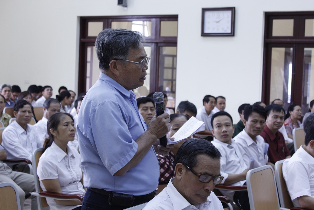 Cử tri xã Bắc Hồng - huyện Đông Anh phát biểu ý kiến tại buổi tiếp xúc cử tri