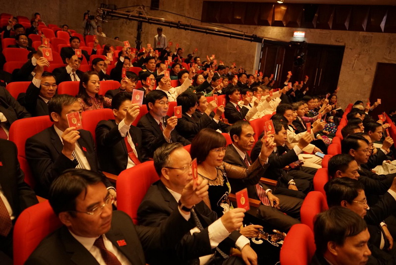 Các đại biểu tham dự Đại hội biểu quyết bằng Thẻ Đảng