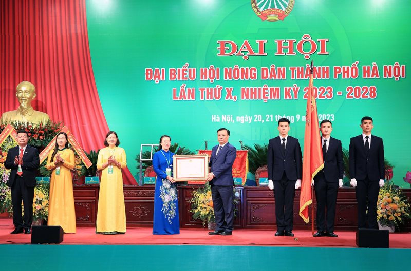 Nhân dịp này, đồng chí Bí thư Thành ủy Hà Nội Đinh Tiến Dũng trao tặng Hội Nông dân thành phố Hà Nội Huân chương Lao động hạng Nhất của Chủ tịch nước.