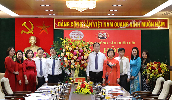 Phó Bí thư Thành ủy, Chủ tịch HĐND TP Nguyễn Ngọc Tuấn tặng hoa chúc mừng Đại hội Chi bộ Phòng Công tác HĐND