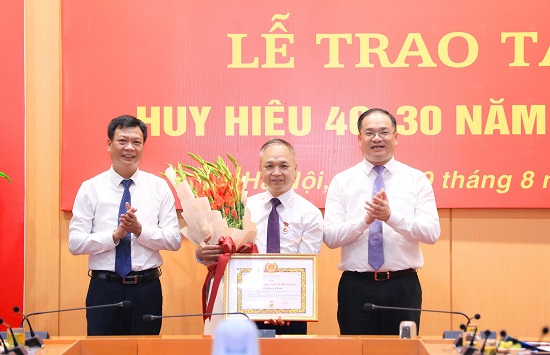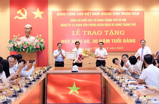 Sáng 29-8, Đảng ủy cơ quan Văn phòng Đoàn đại biểu Quốc hội và HĐND thành phố Hà Nội đã tổ chức trao Huy hiệu 40, 30 năm tuổi Đảng tặng các đảng viên đang sinh hoạt tại Đảng bộ Cơ quan Văn phòng.