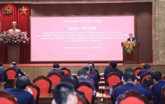 Chiều 27-12, Thành ủy Hà Nội tổ chức Hội nghị tổng kết công tác dân vận, Ban Chỉ đạo công tác tôn giáo, Ban Chỉ đạo xây dựng và thực hiện Quy chế dân chủ ở cơ sở năm 2024; triển khai nhiệm vụ trọng tâm năm 2025 và Chỉ thị số 36-CT/TU ngày 28-11-2024 của Thành ủy Hà Nội.
