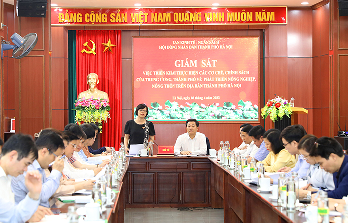 Chiều 3/4/2023, Đoàn giám sát của Ban Kinh tế - Ngân sách, HĐND thành phố Hà Nội làm việc với Sở Nông nghiệp và Phát triển nông thôn (NN&PTNT) về việc thực hiện các cơ chế, chính sách của Trung ương và thành phố về phát triển nông nghiệp, nông thôn trên địa bàn thành phố.