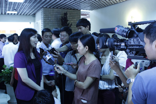 Đại biểu Phùng Thị Hồng Hà trả lời phỏng vấn báo chí tại kỳ họp HĐND TP
