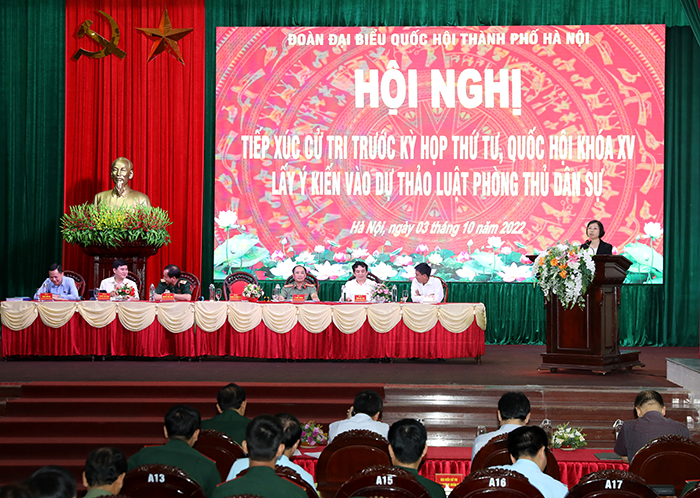 Chiều 3/10/2022, tại Học viện Biên phòng, Đoàn ĐBQH thành phố Hà Nội tổ chức hội nghị tiếp xúc với cử tri thị xã Sơn Tây trước Kỳ họp thứ tư, Quốc hội khóa XV và lấy ý kiến vào dự thảo Luật Phòng thủ dân sự.