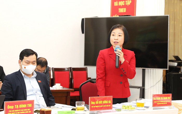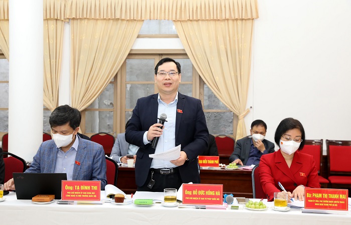 Đại biểu Đỗ Đức Hồng Hà, Phó Chủ nhiệm Ủy ban Tư pháp Quốc hội trao đổi tại buổi giám sát