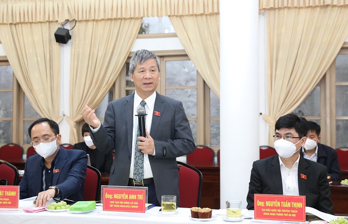 Đại biểu Nguyễn Anh Trí, Chủ tịch Hội đồng cố vấn Tập đoàn Medlatec Group trao đổi tại buổi giám sát