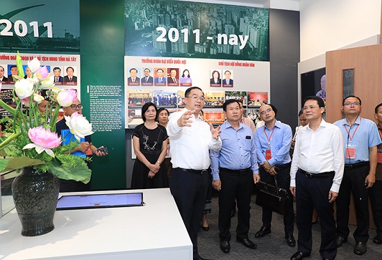 Đoàn cán bộ Thủ đô Vientiane tham quan phòng truyền thống của Đoàn đại biểu Quốc hội và HĐND TP Hà Nội.