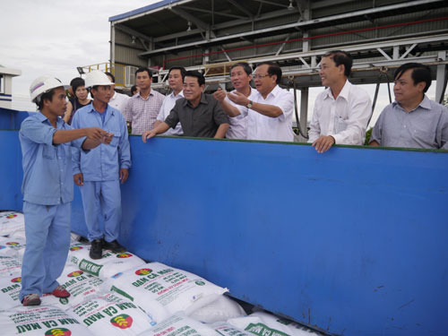 Bí thư Thành ủy Hà Nội Phạm Quang Nghị trò chuyện với công nhân đang làm việc tại Nhà máy Đạm Cà Mau