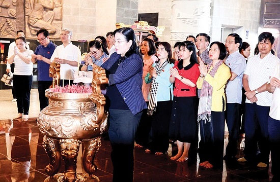 Trong không khí trang nghiêm Đoàn công tác đã thực hiện nghi lễ dâng hương tại Đền thờ vua Hùng, bày tỏ lòng thành kính, tri ân công đức các bậc tiền nhân đã có công dựng nước và giữ nước. Sau lễ dâng hương, các đại biểu đã tham quan và nghe thuyết minh tại các khu vực trưng bày tư liệu, hình ảnh, hiện vật tại Đền thờ vua Hùng.