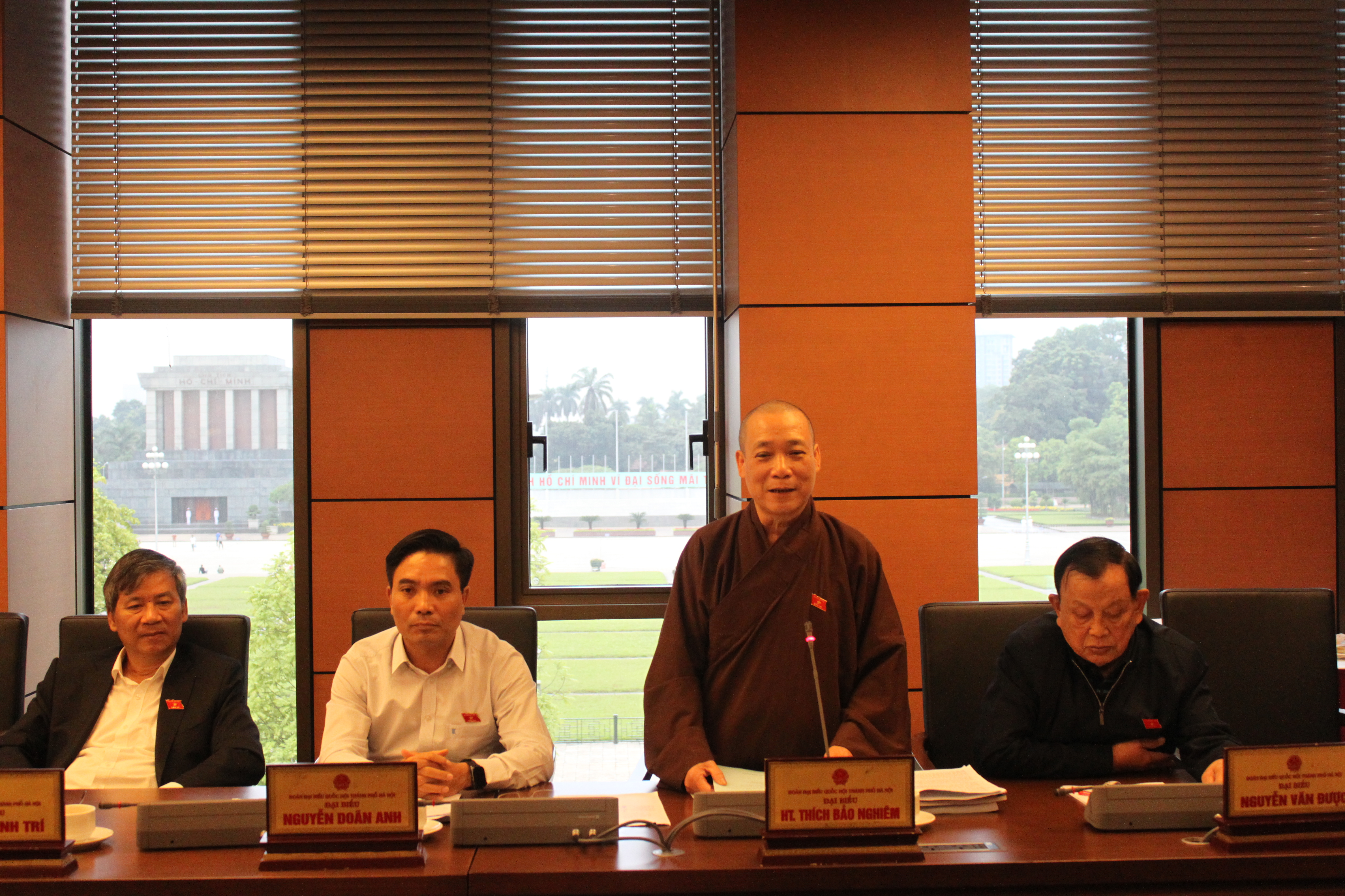 Cho ý kiến về dự án Luật Thi hành án hình sự (sửa đổi), Hòa thượng Thích Bảo Nghiêm, nêu rõ đây là dự án Luật quan trọng, phức tạp, có phạm vi điều chỉnh rộng, liên quan đến nhiều điều luật về tư pháp, tác động trực tiếp đến đời sống, an ninh xã hội.