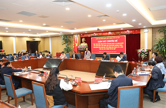 Quang cảnh buổi làm việc của Đoàn giám sát với quận Đống Đa