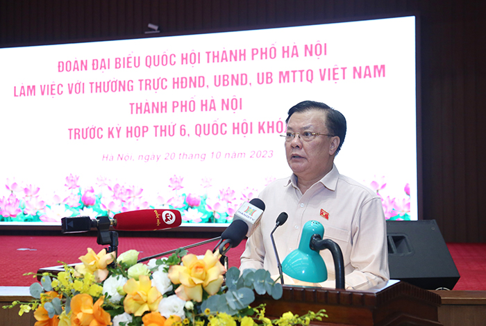 Kết luận buổi làm việc, Bí thư Thành ủy Đinh Tiến Dũng khẳng định, thành tích mà Thành phố đạt được là kết quả của sự cố gắng của các cấp, các ngành, nhân dân và cộng đồng doanh nghiệp Thủ đô; trong đó, có sự đồng hành, hỗ trợ tích cực của các đại biểu Quốc hội Đoàn đại biểu Quốc hội Thành phố.