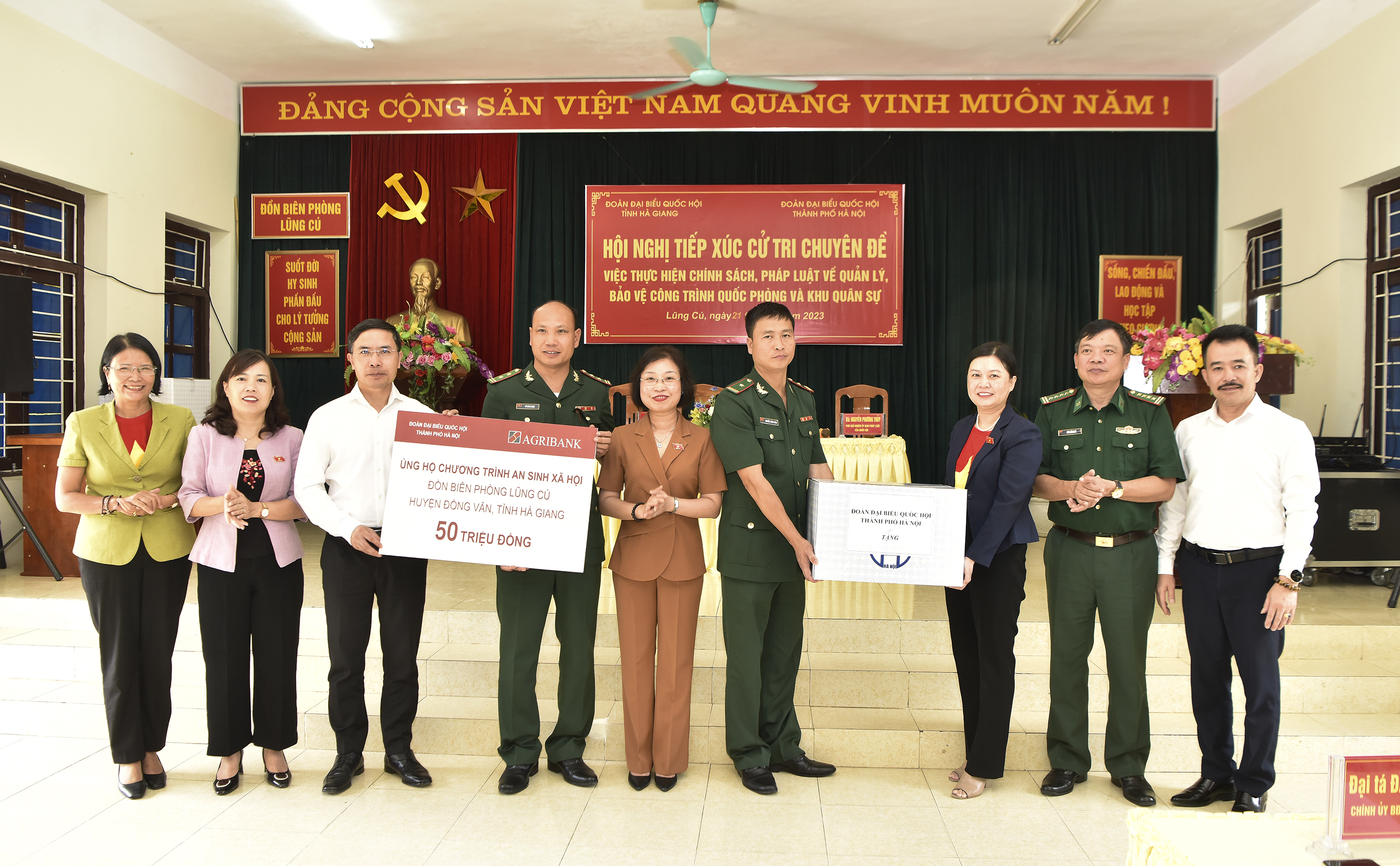 Đoàn đại biểu Quốc hội thành phố phối hợp với Ngân hàng Agribank trao 50 triệu đồng ủng hộ chương trình an sinh xã hội và tặng quà cán bộ, chiến sĩ của Đồn biên phòng Lũng Cú