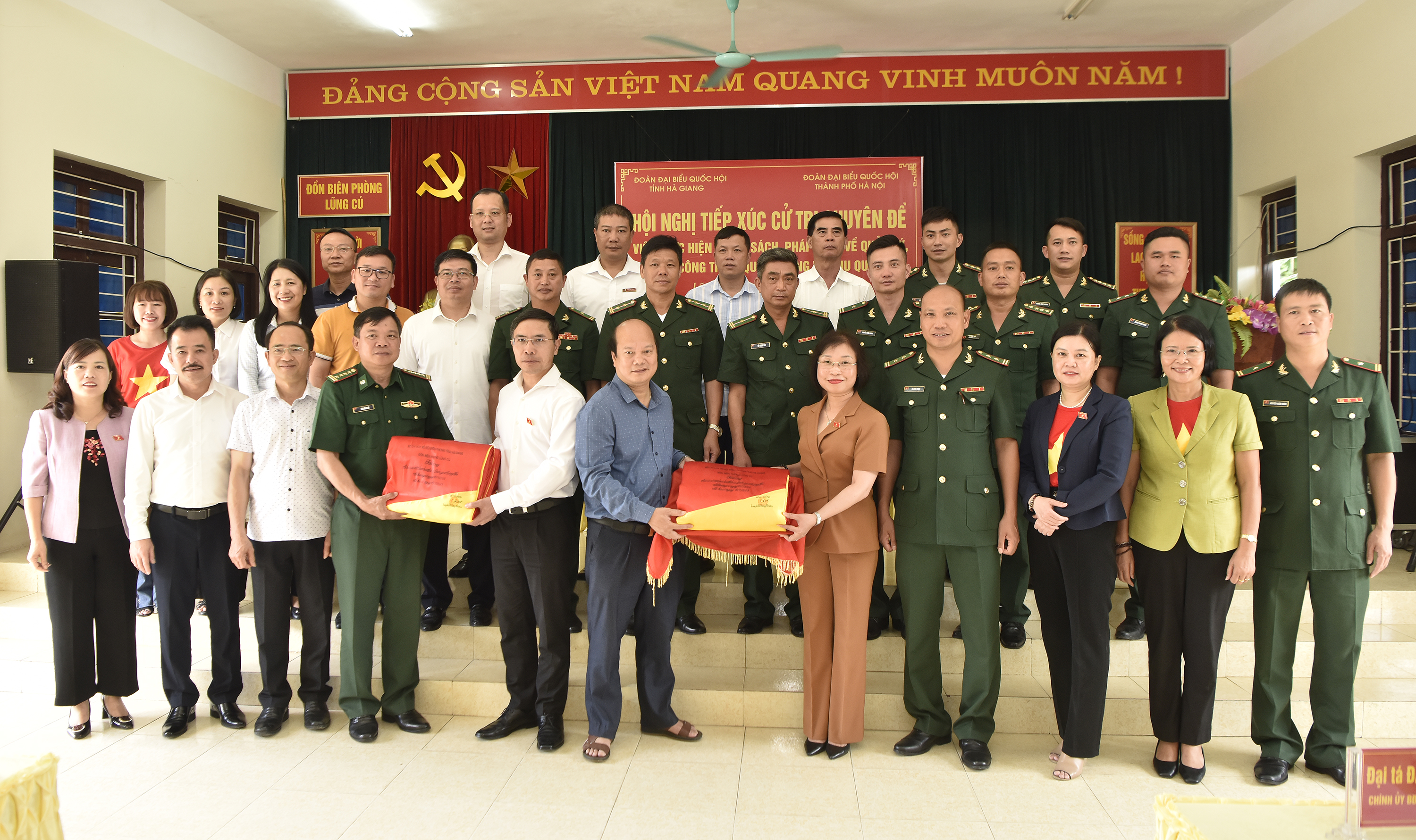 Ngày 21/7/2023, tại Đồn biên phòng Lũng Cú (huyện Đồng Văn, tỉnh Hà Giang), Đoàn đại biểu Quốc hội thành phố Hà Nội và Đoàn đại biểu Quốc hội tỉnh Hà Giang phối hợp tổ chức hội nghị tiếp xúc cử tri chuyên đề “Việc thực hiện chính sách, pháp luật về Quản lý, bảo vệ công trình quốc phòng và khu quân sự”.