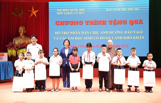 Nhằm sẻ chia với người dân và công nhân lao động bị thiệt hại do bão, lũ, các đại biểu Quốc hội của Đoàn đại biểu Quốc hội thành phố Hà Nội trao các suất quà, thể hiện tình cảm, sự quan tâm tới người dân, công nhân lao động có hoàn cảnh khó khăn với mong muốn sẻ chia, làm vơi bớt những khó khăn để họ tiếp tục vươn lên trong cuộc sống, cống hiến, gắn bó với công việc.