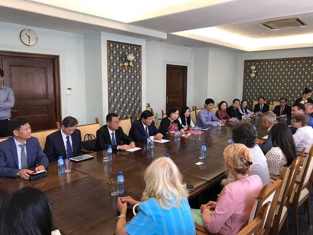 Cũng tại Thủ đô Sofia- Bungari, đồng chí Nguyễn Quốc Hùng, Phó Chủ tịch UBND thành phố đã dẫn đầu đoàn công tác tổ chức trao đổi kinh nghiệm với Cơ quan đầu tư và cổ phần hóa trực thuộc Ủy ban thành phố Sofia. Tại buổi làm việc, hai bên đã giới thiệu những tiềm năng, thế mạnh của hai thủ đô. Đồng chí Nguyễn Quốc Hùng đánh giá cao sự phát triển kinh tế, xã hội, du lịch, y tế của thành phố Sofia và mong muốn hai địa phương sẽ thúc đẩy hợp tác toàn diện trên các mặt công tác, trong đó tập trung vào thế mạnh về du lịch, y tế và xây dựng.