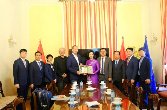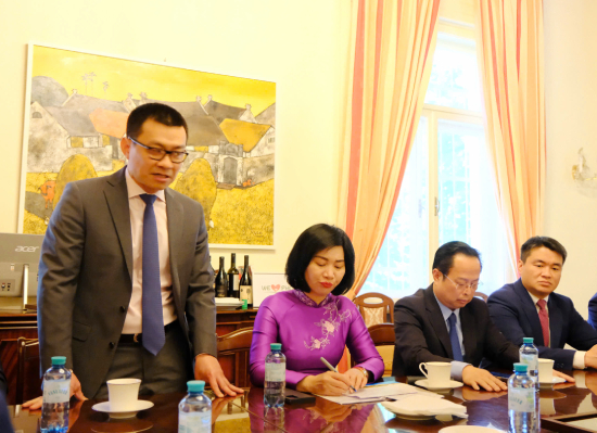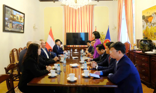 Trong khuôn khổ chuyến công tác, đoàn cũng tới thăm, làm việc với Đại sứ quán Việt Nam tại Cộng hòa Áo. Dự và tiếp đoàn có Đại sứ Việt Nam tại Cộng hòa Áo Vũ Lê Thái Hoàng.