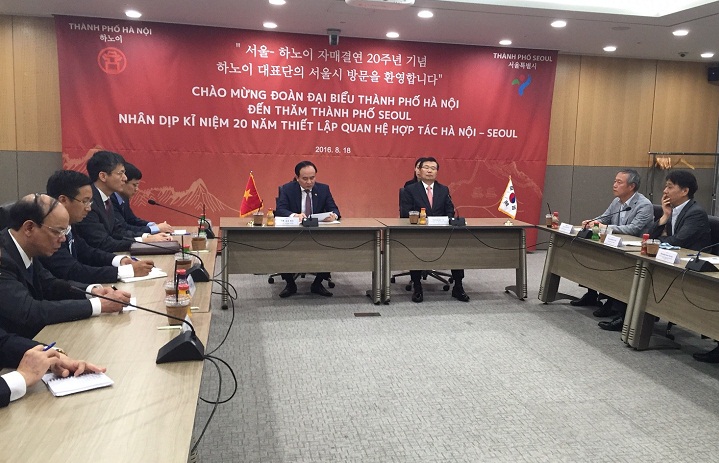 Ngày 19/8/2016, thành phố Hà Nội đã phối hợp với Chính quyền thành phố Seoul và Đại sứ quán Việt Nam tại Hàn Quốc tổ chức hội thảo “Hà Nội-Seoul: Thúc đẩy hợp tác đầu tư và phát triển thương mại, du lịch”. Tại cuộc hội thảo, các đại biểu đã nghe giới thiệu tổng quan về tiềm năng và sự phát triển mạnh mẽ của thành phố Hà Nội; môi trường, chính sách phát triển hợp tác giữa hai thành phố trong các lĩnh vực đầu tư, thương mại và du lịch; lợi thế trong các lĩnh vực trên cùng những định hướng phát triển; giải pháp thu hút đầu tư, đẩy mạnh hợp tác thương mại và du lịch giữa hai thủ đô nói riêng và hai nước nói chung, đặc biệt trong bối cảnh Hiệp định Thương mại tự do Việt Nam-Hàn Quốc đã chính thức có hiệu lực từ tháng 12/2015.