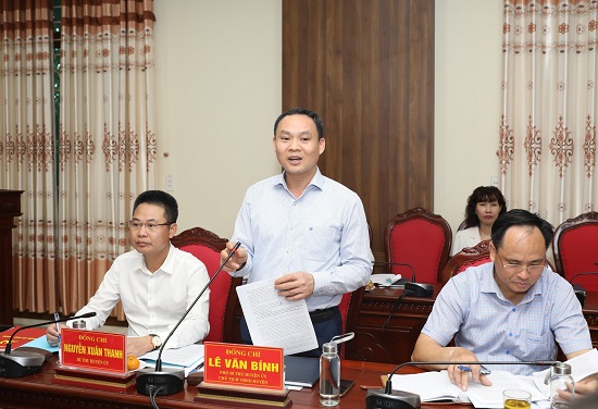Chủ tịch UBND huyện Lê Văn Bính báo cáo tại buổi làm việc